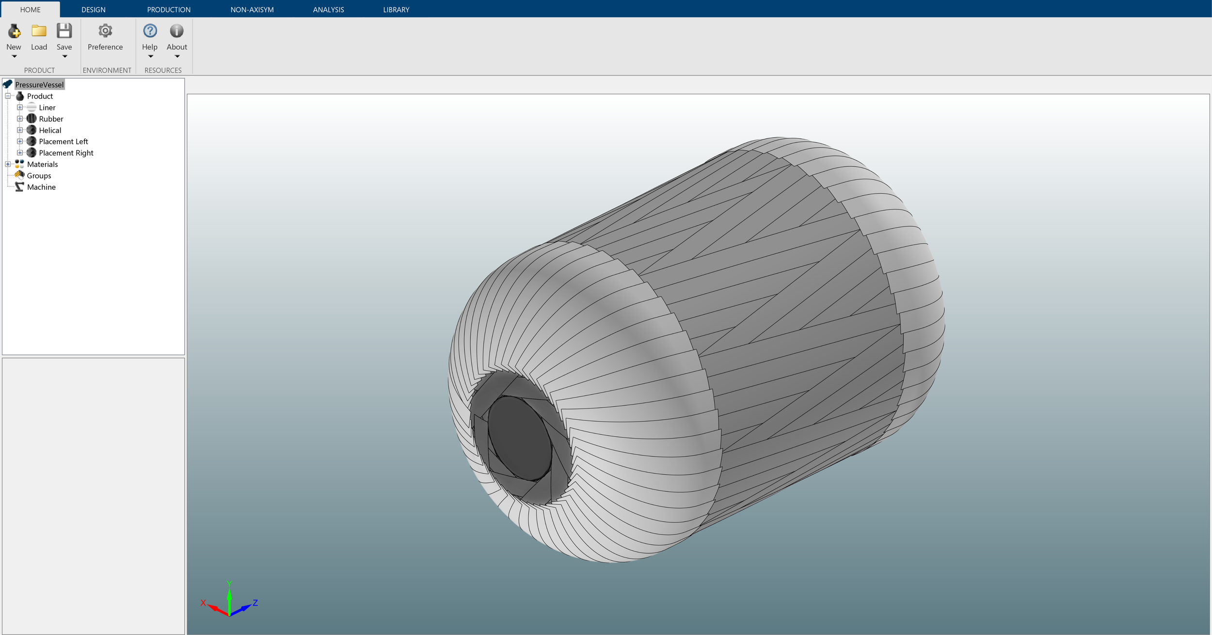 Rubber layers, filament winding layers, and AFP layers all integrated in a single design in TaniqWind Pro
