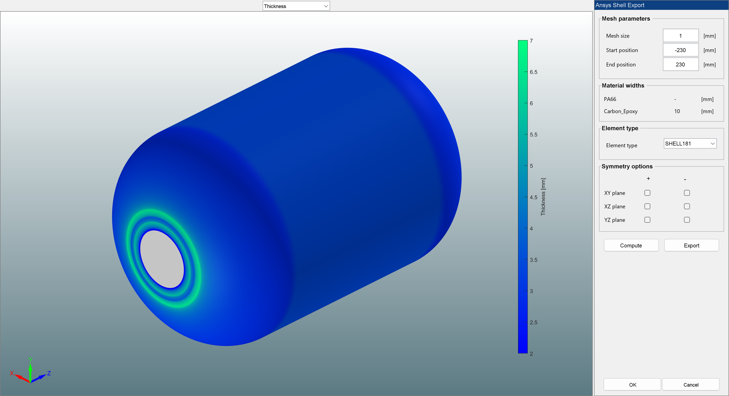 The export functionality for 3D solid‐element FEA models now supports generating por tion models based on a user‐defined angle around the rotational axis.