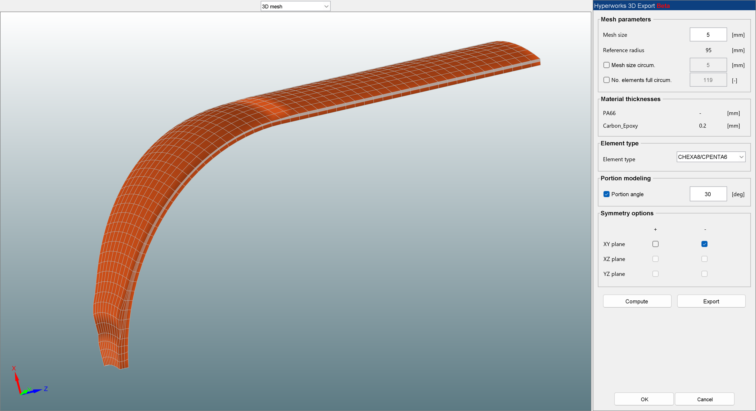 Supports exporting the design using 3D solid elements for Hyperworks.